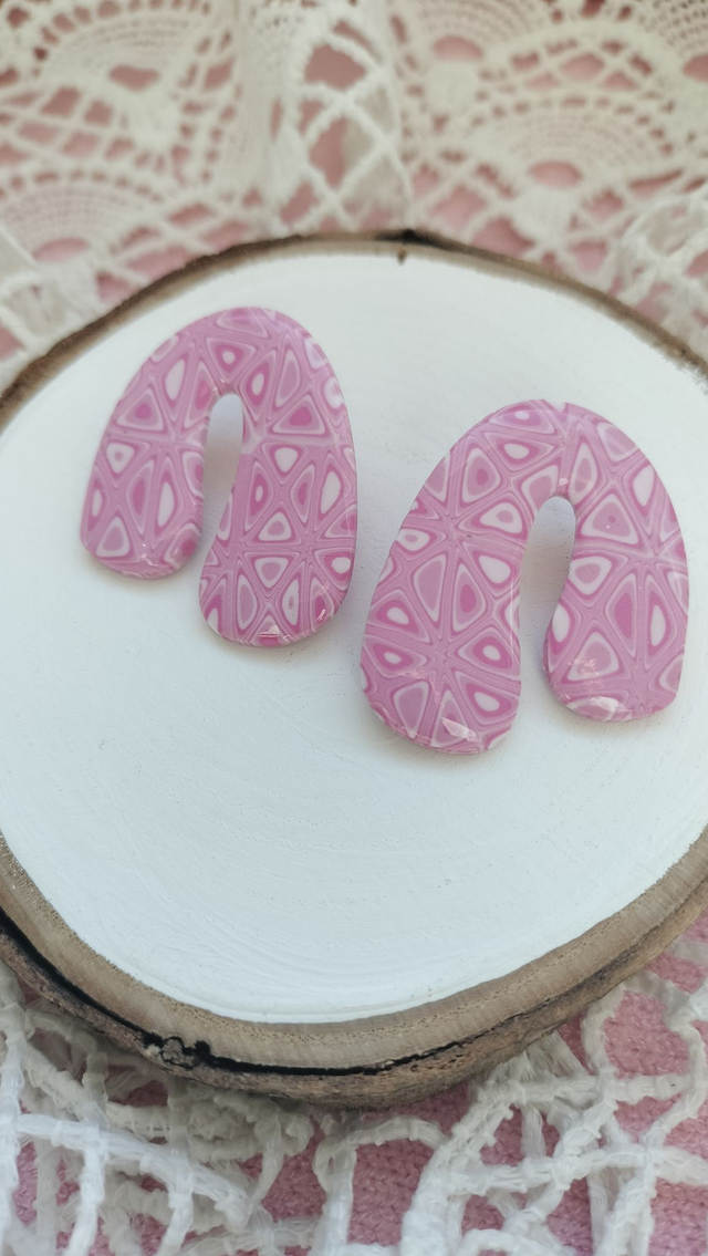 Boucles d’oreilles organiques motif géométrique rose